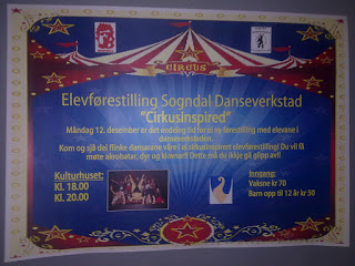 I andre nyheter skal jeg på «cirkusinspirert» danseforestilling fra en dansegruppe for barn nå på mandag, vet ikke helt hva det vil gå i, men er blitt lovet «akrobater, dyr og klovneri». Vi får se, vi får se 🙂 .