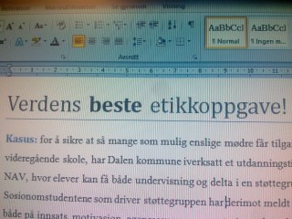Hvis noen av dere vil ha en etikkoppgave å reflektere over, går den ut på at en gjeng sosionomstudenter har blitt ansatt ved et spesialskoleprosjekt for enslige mødre som tar VGS-utdanning. Støttegruppen skal både hjelpe til med faglig og personlig rådgiving og drive avlastning i forhold til omsorgsoppgaver. Nå er greia at det er forskjell på elevene, noen er både skoleflinke og supermotiverte, mens andre igjen bare vil «komme seg gjennom». Noen har store ressurser som foreldre og venner som de kan snakke med og bruke til for eksempel barnepass, andre står mye mer alene. Noen har liv som «går på skinner», andre sliter med skolen, økonomi, helse, eller andre ting.