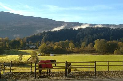 Det er midt på dagen og sol, men likevel bikkjekaldt, og jeg er på ridetur med hesteklassen på jordene og traktorveiene dypt inne i den nord-trønderske vinteren. Hestene baner seg vei i en lang rekke gjennom dyp snø. Vi hesteelevene må dele på hestene med videregående-klassene som også bruker gården, så vi tar de turmulighetene vi får, og da lar vi oss ikke stoppe av at vinteren er her. Så her sitter jeg på hesteryggen med en tjukk jakke, buff rundt halsen, lue under hjelmen, og superundertøy under klærne. Er tyngre å puste med buffen over nesa, så innimellom lar jeg den gli ned igjen, før jeg igjen må opp men en hanskekledd hånd for å trekke den opp over nesa igjen. Jeg vet ikke om jeg noen gang har vært bedre kledt enn jeg er under disse rideturene, og er takknemlig for at det ikke finnes dårlig vær, bare dårlige klær.
