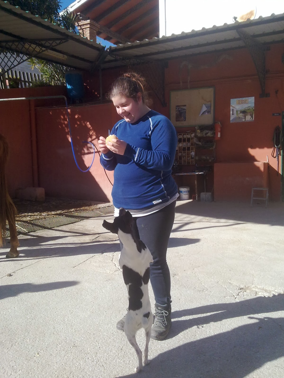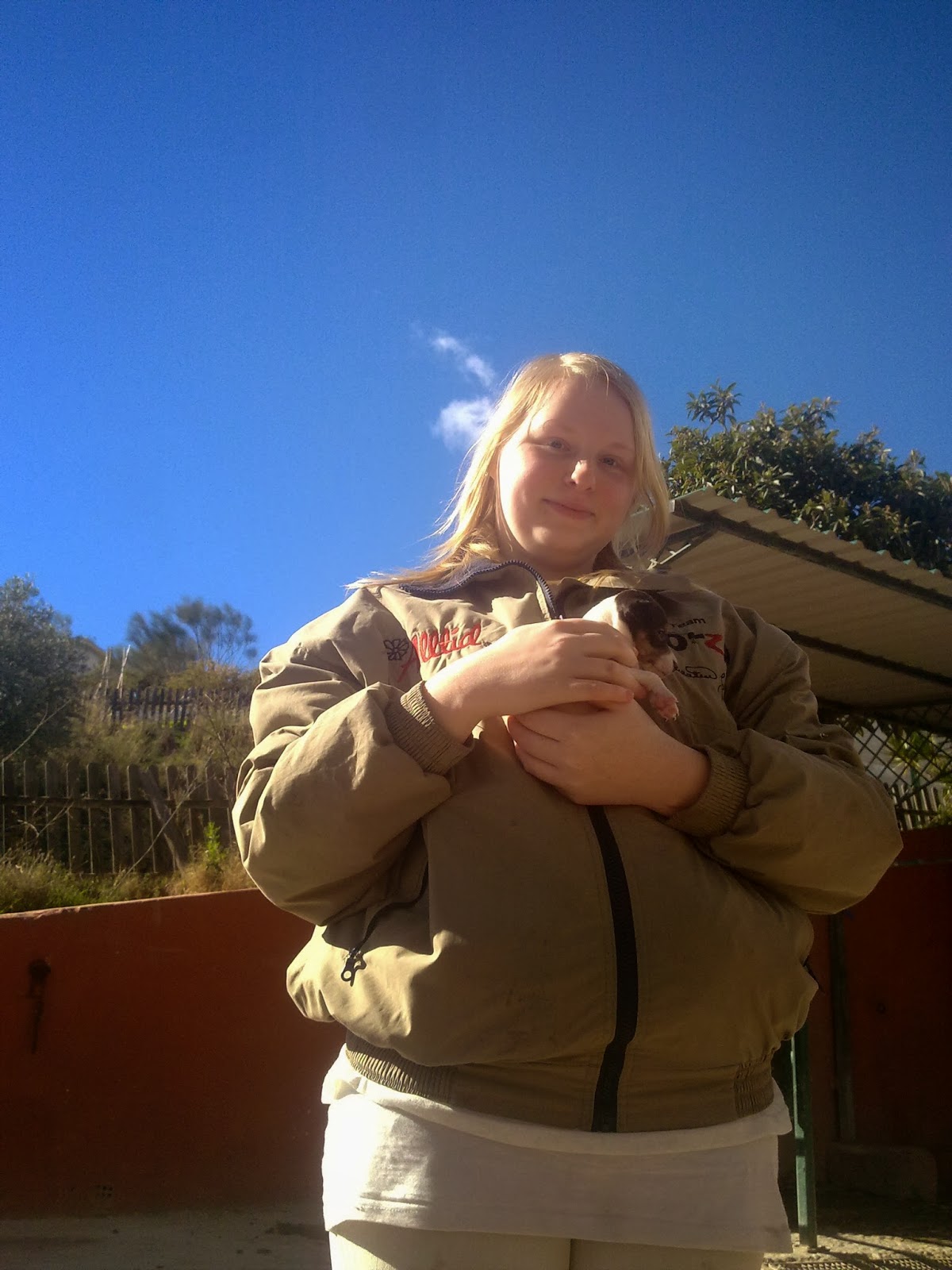 Alt har gått bra hele turen, bortsett fra at én av oss først mistet lommeboka da vi var i Malaga og så ble kastet av hesten på tur, så hun ble kjørt opp til ridesenteret for å få kommet seg opp på en hest igjen så fort som mulig. På ranchen hadde vi i tillegg til hestene også blitt kjent med et helt lite valpekull som vi brukte veldig mye av fritiden vår til å kose med.