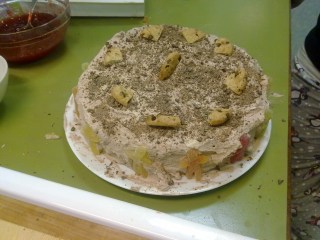 Er et par ting utenom det vanlige som er skjedd siden vi kom hjem igjen fra Spania. Vi har hatt kakepyntekonkurranse, hvor jeg og to andre fra vårt internat (deler av internatet var riktignok bortreist) lagde kakao-bløtkake med seigmenn, sjokoladekjeks og revet sjokolade, og det var både kjempekoselig og gøy selv om vi ikke vant, og jeg skal deff lage bløtkake igjen når jeg får penger🙂. Vi har hatt «sansedag» hvor vi hørte på musikk og malte bilder og mønstre basert på inntrykkene vi fikk, så, smakte og luktet på ting og prøvde å finne ut hva de var for noe, og bygget ting av pappkasser.