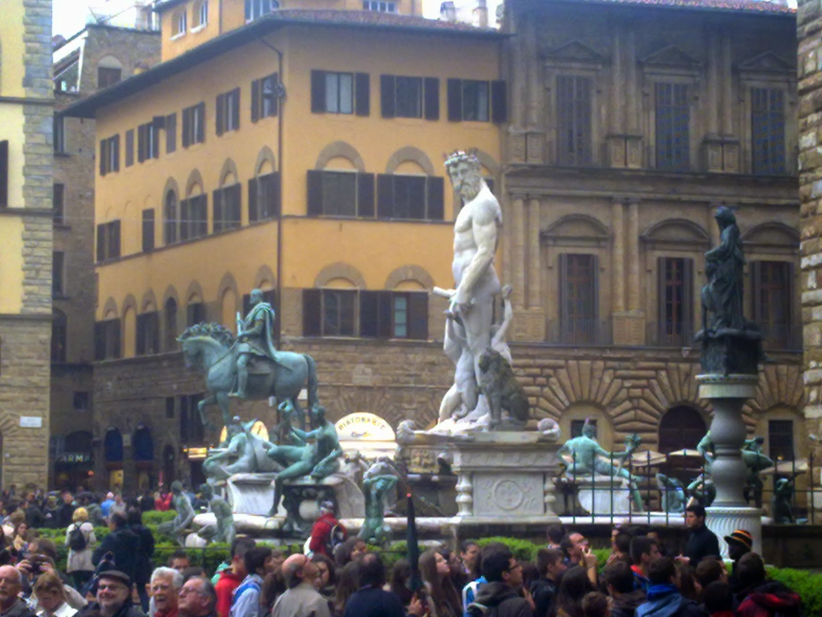 Vi kjørte fra by til by med bussene og tok inn på forskjellige hotell, men de neste dagene tilbrakte jeg mesteparten av byvandringene vi var på med å ligge rett ut i gresset eller på en benk og bare vente på at bussen skulle komme tilbake, og til slutt klarte en av lærerne å overbevise meg om at jeg trengte en fridag. Kjente det gjorde meg godt, og at det ga meg mer energi til vi skulle til Firenze, en perle av en by jeg er kjempeglad for at jeg ble med til. De hadde en svær bro med innebygde hus, noen massive og utrolig forseggjorte statuer, og svære steinbygg fra gamle dager. Ble og med på noe så spesielt som en Gucci-museum-tur, litt bare for å ha gjort noe helt utenom det vanlige for meg (er egentlig ikke noen moteløve og har aldri hatt noe forhold til Gucci) 🙂 .
