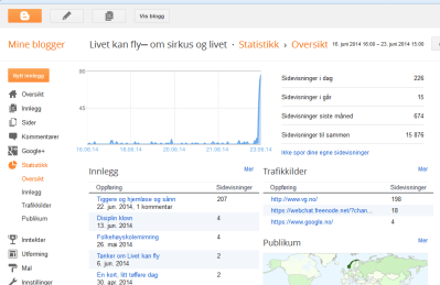 Ikke aner jeg hvordan Magne fant den lille bloggen min i alt mylderet, men ganske riktig, innlegget lå ute på vg.no, og blant andre innlegg med rundt 4-10 treff har innlegget i skrivende stund oppunder halvannet tusen tusen treff, mer enn hva hele bloggen vanligvis får på flere måneder. Vet det selvfølgelig kommer til å avta, og er glad så mange har vært innom, og kanskje jeg får en ny leser eller to, men ja, var temmelig overveldende, for å si det mildt.