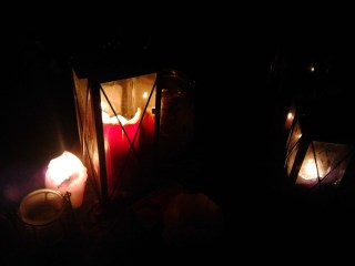 Har gått ut et par ganger for å se hvordan gapahuken ser ut på avstand med fyr i ovnen og stearinlysene tent. Den ser koselig ut, bedre enn da jeg kom og den mørke gapahuken nesten så «skummel» ut. Har prøvd å ta bilde, men det blir for mørkt for mobilen min.