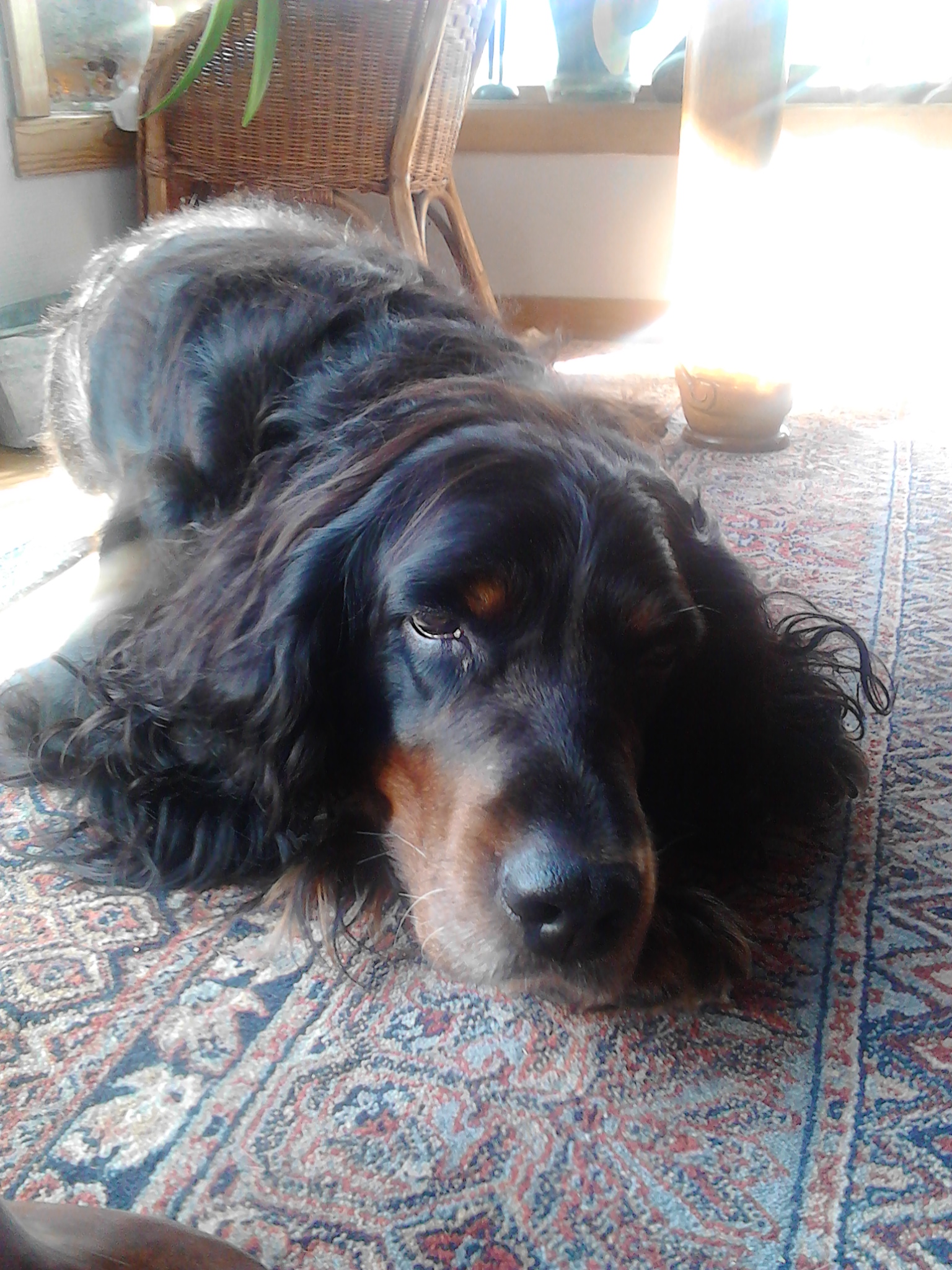 Kan uansett skrive om helgen min med Sash‘:). Passet henne som sagt hele langhelgen til mandag kveld, og vi fikk et par gode turer opp til gapahuken på tross av dårlig vær. Gjorde faktisk opp ild der den første dagen, selv om været egentlig var ganske varmt og jeg ikke hadde med mat, det er bare så koselig å sitte i gapahuken med fyr i ovnen, og Sasha i bånd utenfor så hun kan snuse rundt og bare sette seg og følge med på skogen rundt seg. Merker at turene til gapahuken er omtrent passe lange for Sash; hun har mer enn nok overskudd til å gå dem, men samtidig er de lange nok til at hun «slukner» tilfreds når hun er kommet hjem.