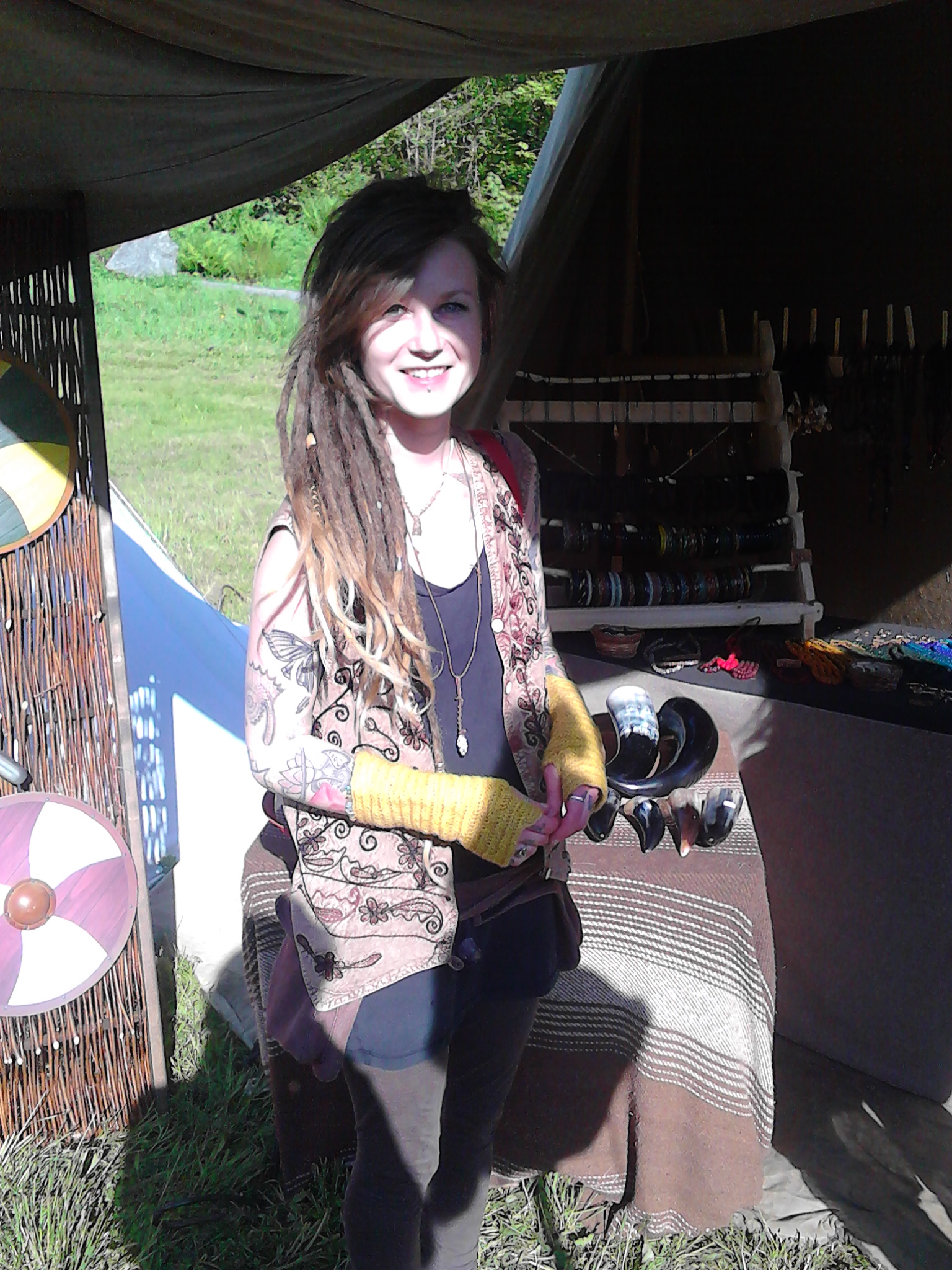 Sånn, det var dagens utblåsning. For å skrive om noe hyggeligere: var også på vikingmarknad på Hordamuseet fredag. Arrangørene hadde rigget til telt, ikledd seg tidsriktige drakter, og tilbød alt fra klær, smykker, mat og håndarbeider til riding på islandshest, skyting med pil og bue, tur med vikingskip og en kar som fortale morsomme historier. Eneste minus var at flere av tingene jeg ville prøve (riding på islandshest!) ikke tok kort, så gikk derfra rimelig tomhendt, kan du si 😉 . Men lot ikke det ødelegge noe, det var kjempekoselig og jeg er glad jeg gikk.