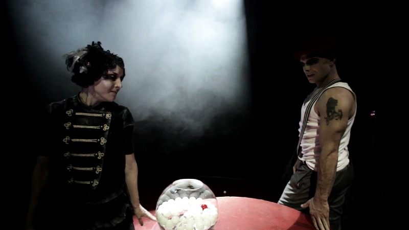 Forestillingen fant sted på en scene, men de hadde liksom bygd en sirkusmanesj, med luftakrobatikk-rigg, på scenen, og de hadde en dør de kunne dreie rundt scenen, og som artistene i hvert fall i begynnelsen av forestillingen trengte for å komme inn og ut av manesjen. Siden det var en sirkusforestilling involverte artistene også publikum, noe som gjorde det litt «skummelt», men utrolig underholdende å sitte på første rad. Ble spesielt imponert over motet til hun som ble spent fast til en spinnende skive som en av artistene kastet kniver mot. Hun fikk en bukett av sugekopper som belønning, og mest sannsynlig et minne for livet 😀 .