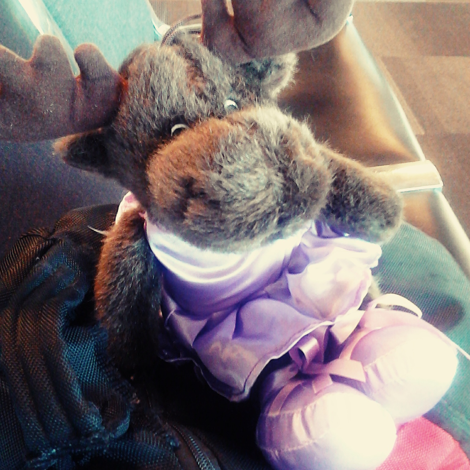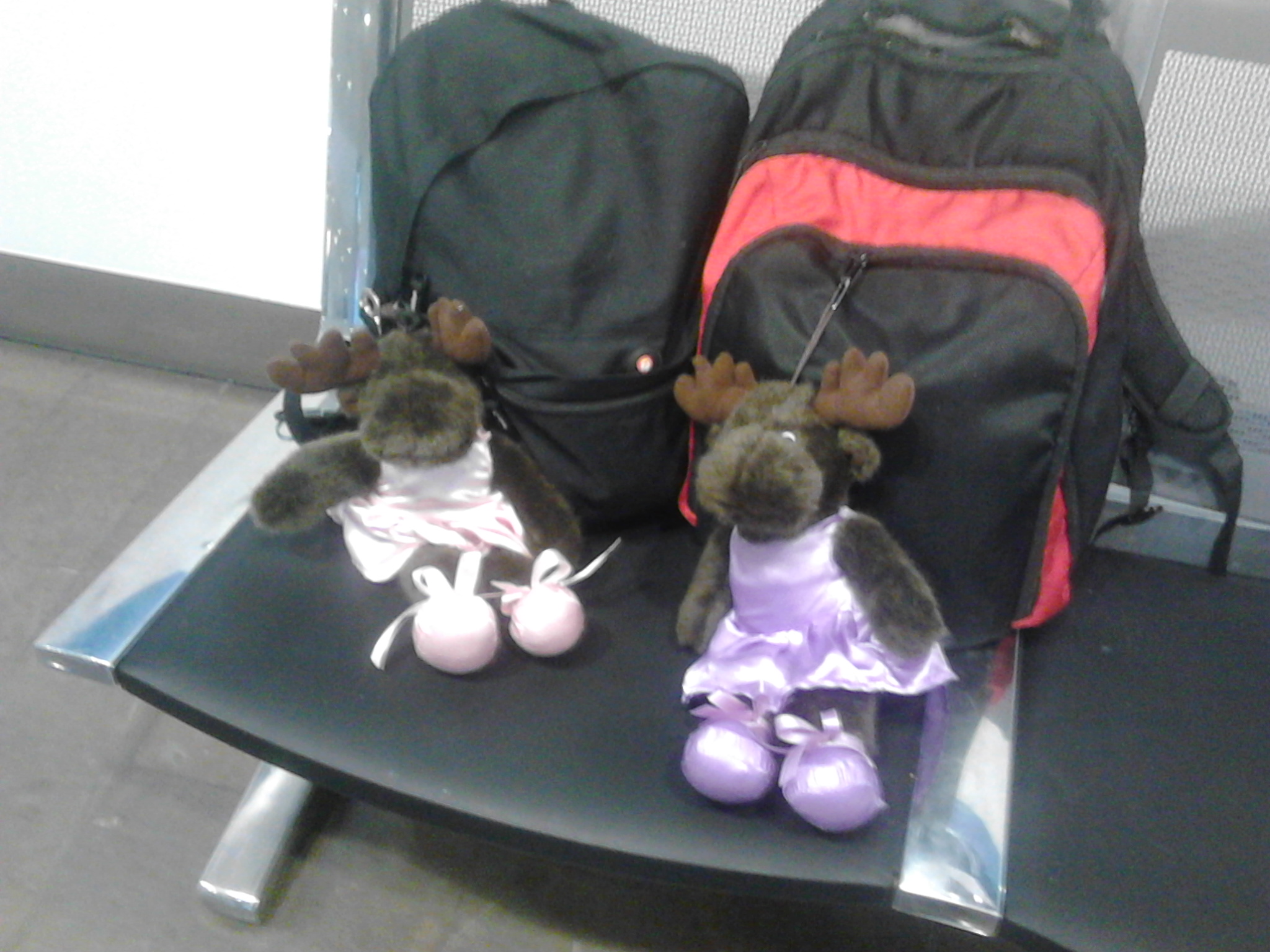 Benni og Heidi sitt fly dro seks timer før mitt, så jeg kom ganske langt ut i Stallo før flyet mitt endelig ankom og jeg kunne gå om bord. Fordrev tiden på å shoppe souvenirer og få i meg mer mat og kaffe. Så de solgte elger som nesten lignet Elisabeth og Heidi, men vi endte opp med ikke å kjøpe dem, det får holde med de vi har 😉 .