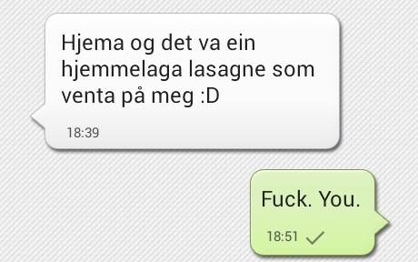 Etter å ha ventet en evighet fikk jeg vite at flyet var 30 minutter forsinket, og da det endelig dukket opp, ble det ytterligere 20 minutt forsinket fordi en random gjøk hadde sjekket inn baggasjen sin for så å ikke gå om bord på flyet (dette skjedde for så vidt også på veien til Sverige, kanskje det var samme person), så vi kom oss av gårde først sent på kveld. Tror pilotene fløy inn en del av den tapte tiden, for jeg kom ikke så veldig sent hjem, og ble møtt av foreldrene mine og en overlykkelig Sasha hund 😀 !