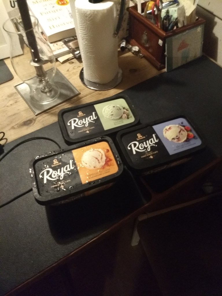 Jo, og så kom isbilen på besøk igår, så jeg bega meg ut i mørket for å kjøpe en boks is.