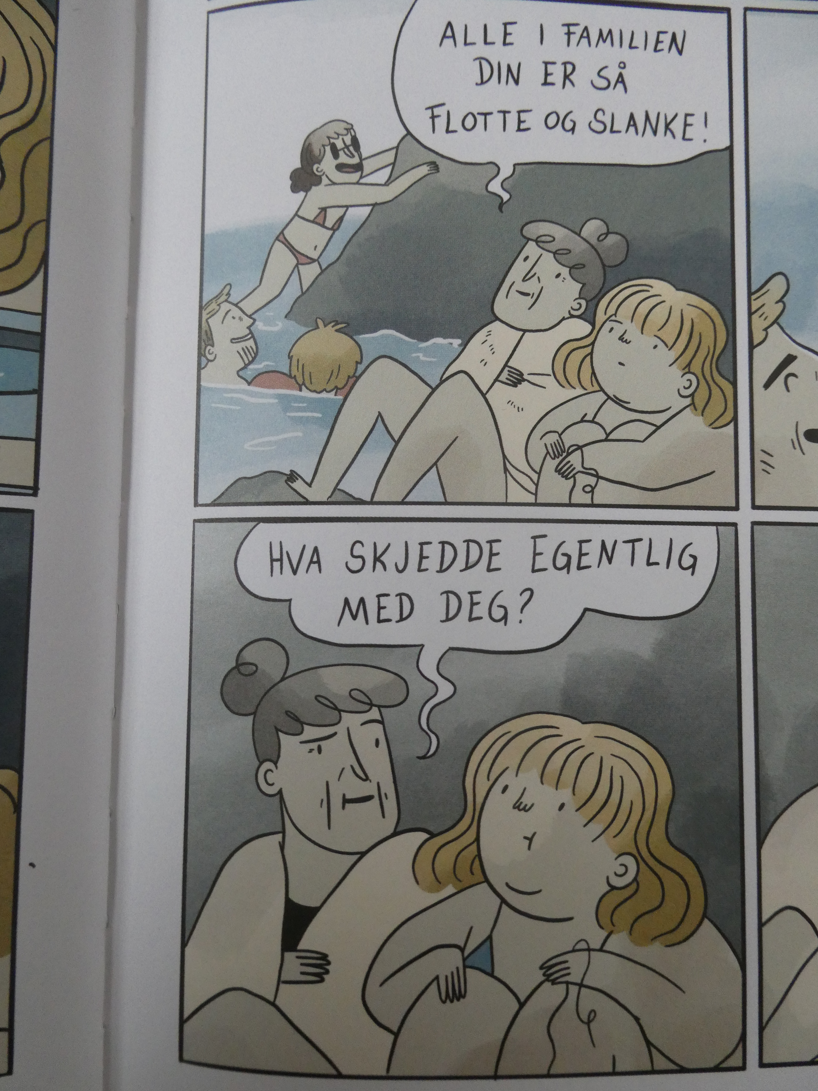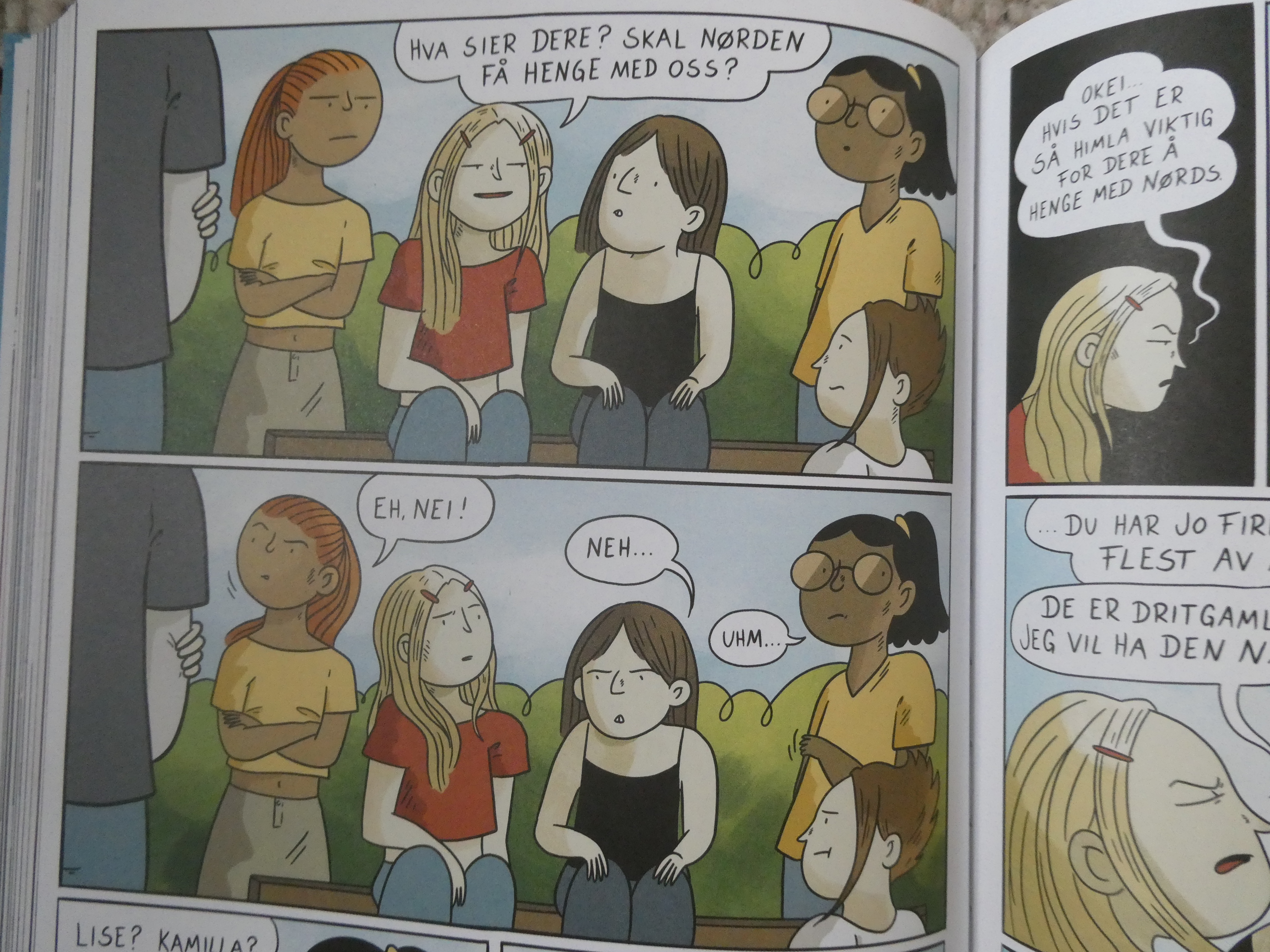 Jeg tror alle kan være enig i at barn og unge ikke skal utsettes for porno, og du trenger heller ikke lese lenge på bloggen her før du ser at bevisstgjøring rundt, og arbeid mot overgrep er noe jeg brenner veldig for. Jeg kan også være enig i at, eh, ja, forfatteren kunne gjerne tegnet den ene ruten annerledes. Men: Porno er et sterkt ord som har en veldig klar definisjon: Det er noe som er laget for å vekke seksuell opphisselse i den som ser på. All skildring av nakenhet eller sex er selvfølgelig ikke pornografisk. Tegninger eller fotografier av nakne kropper i en naturfagsbok er ikke porno. Den noen få sekunder langt tegnefilm-snutten vi så i ungdomsskolen hvor en gutt lå på sofaen og onanerte til han fikk sædavgang var heller ikke porno. Jeg er enig i at det er litt spesielt at forfatteren ser ut til å ha tegnet seg selv som barn selv om hen jo var yngre da hen først fantaserte om å suge en strapon, men porno? Seksualiserer du ruten på den måten er det kanskje heller du som har et problem. Barn og unge lærer uansett, gudskjelov, om grensesetting, seksualitet og overgrep på skolen. De vet at forhold mellom barn og voksne ikke er OK.