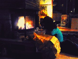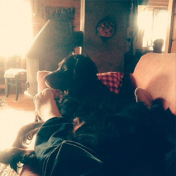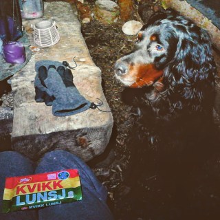 Jeg hadde pakket varme klær, ullsokker og sovepose, og gjorde opp ild i ovnen da jeg kom frem, så kulde var aldri noe problem. Det som gjorde at jeg fikk null søvn var at Sasha nektet plent å legge seg til å sove. Hun virket egentlig litt engstelig, men det hindret henne ikke i å insistere på å sitte på post foran gapahuken og se ut i skogen, noe som ble et problem fordi jeg var redd hun plutselig skulle få ferten av noe og sette ut i nattemørket. La hun seg først ned med meg, gikk det en veldig kort stund før hun reiste seg og forsvant ut igjen.