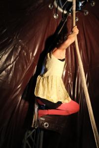«Bastard» er en barnevennlig opptreden som jeg bare så vidt fikk med meg fordi jeg under forestillingen befant meg på taket av teltet;). Mer om det lenger nede. Uansett, soloopptredenen utføres av Karoline Aamås, som er sirkusutdannet ved AFUK i Danmark (som jeg blogget om tidligere etter at halve klassen overlevde opptaksprøven deres tidligere i år), og skal begynne på den prestisjefylte Dans och Sirkushögskolan (DOCH, uttales «dokk») i Stockholm til høsten.