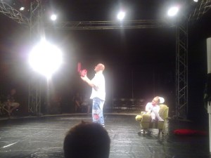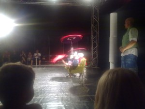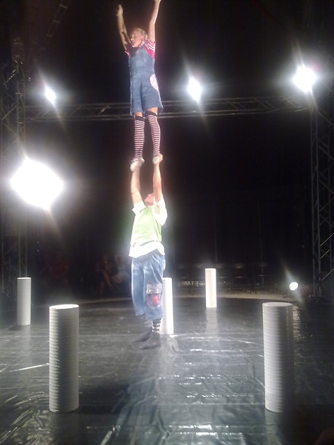 Dette var en morsom parakrobatikkforestilling med romantisk/komisk tema med to artister fra Finland, Pasi og Kate. Fikk ikke sett mer enn en fem-ti minutter før forestillingen måtte innstilles pga. strømbrudd, men det jeg så var veldig lovende.