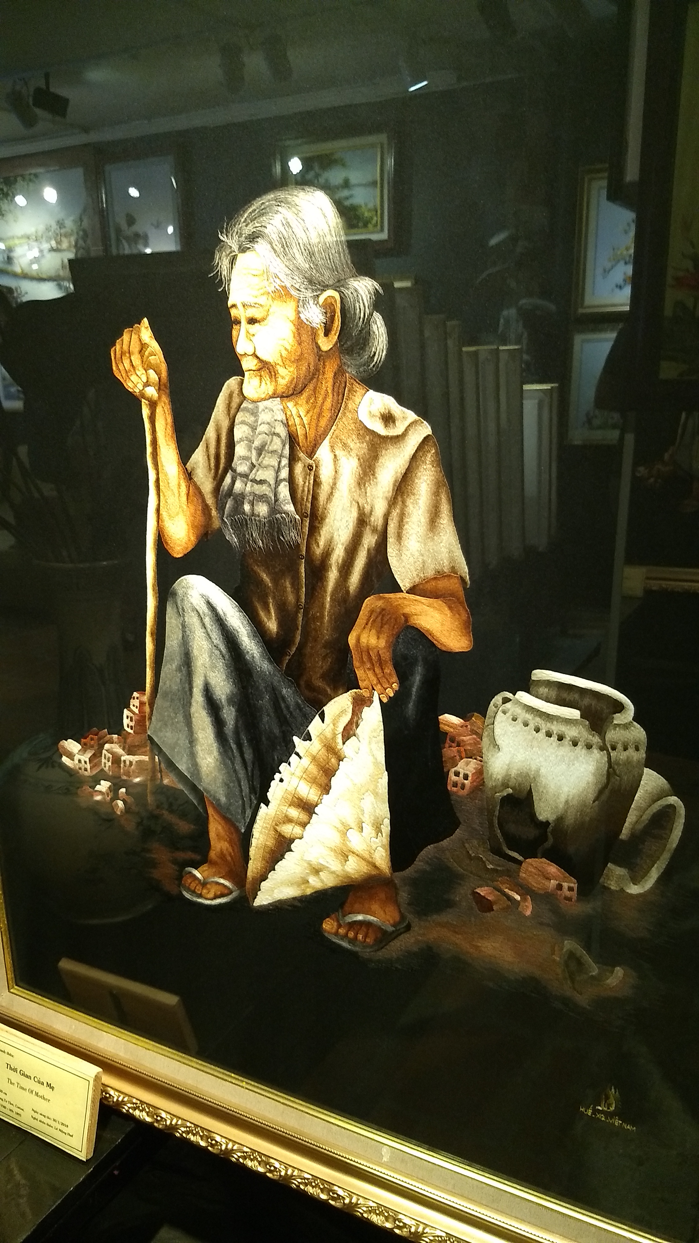 I alle fall. Turen gikk så til et sted der de lagde forseggjorte broderier. Noen av dem tok flere måneder eller år å lage, og de som for eksempel broderte ansikter hadde 10 års erfaring. De solgte også kjoler og slips i ekte silke.