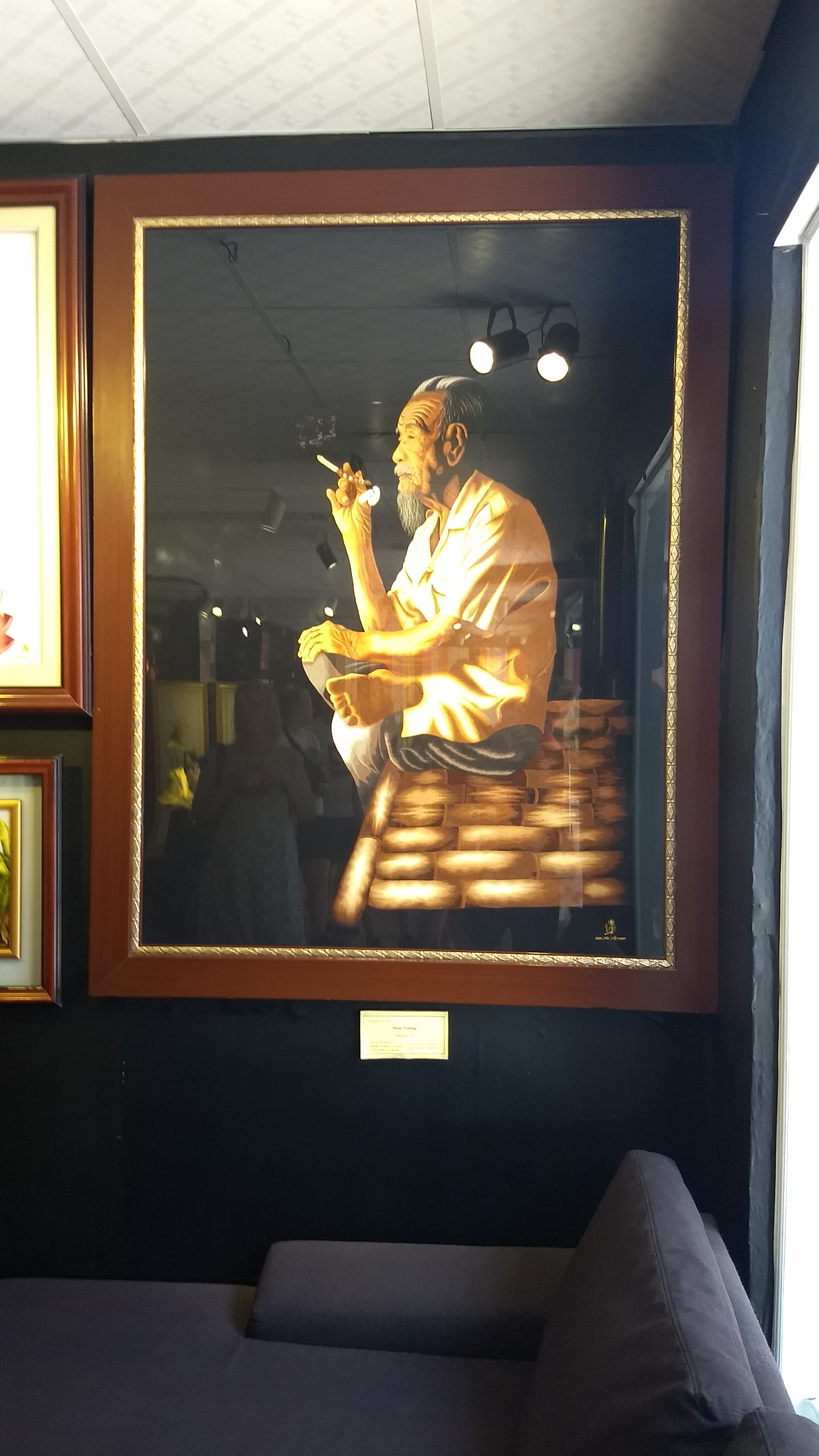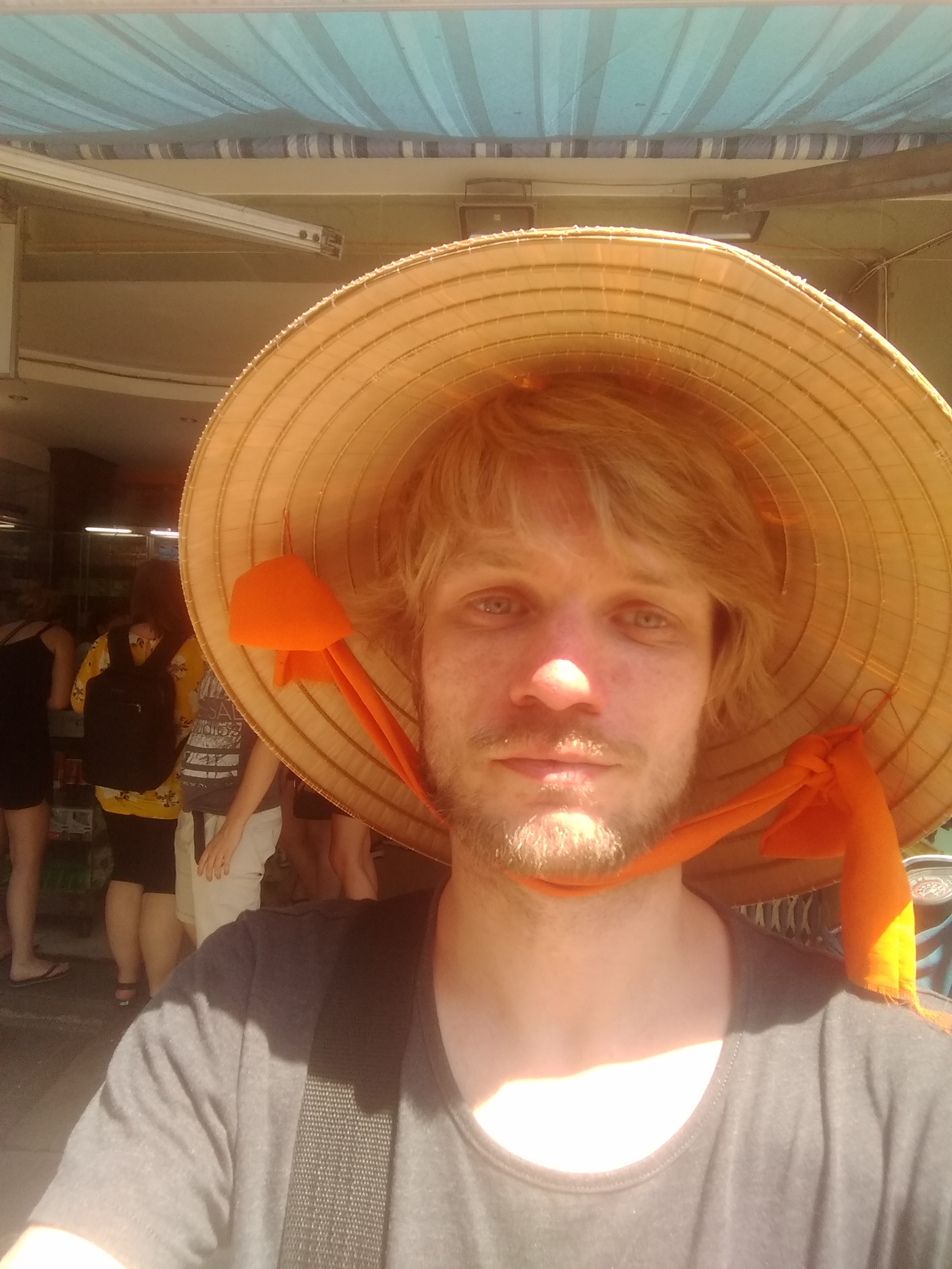 Jeg kjøpte Viet Nam-souveniren jeg ble mest glad for mens jeg var der, for på vei opp satt det noen og solgte vifter og stråhatter. Tok med meg lillesøster som kan vietnamesisk og tenkte å bruke den vietnamesisken jeg kunne for å kjøpe en stråhatt, men hun ville jeg skulle snakke engelsk for å se om de kom til å lure meg. Fikk prutet dem ned fra 100 til 65 tusen, fikk hundre for lite igjen, påpekte det, fikk for mye igjen. Vet fremdeles ikke om de prøvde å lure meg eller om de bare telte feil, men har i det minste en flott stråhatt og en god historie. Den fikk heldigvis plass under stolryggen foran meg da jeg tok den med på flyet, så det gikk greit å få den med seg hjem.